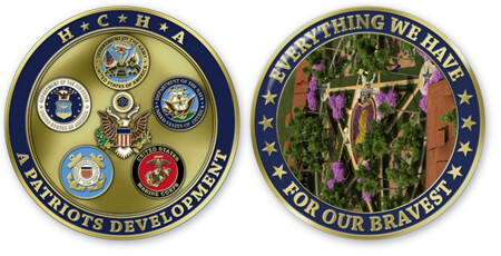 Honoring Members of the Military is a Long Lasting Tradition The challenge coin that we created for them will be given to Veterans. These men and women can relate to the military nature of the coins. The reason behind this is quite simple. Active duty military and Veterans alike know that challenge coins are awarded for excellence and popularized by challenging others in bars. HCHA wanted to be sure that the coins made a statement for the new development. The large 3” size ensures that the coin will not go unnoticed. The message included on it states, “Everything we have for our bravest”. This statement shows that HCHA wanted nothing but the best for our military men and women.