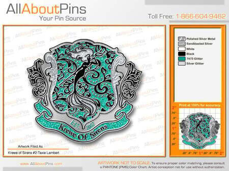 One of the first designs we helped design as a company was a krewe pin for the Krewe of Sirens, a Pensacola-based krewe promoting self-confidence among women. Krewe of Siren’s pin design is represented by a crest of a mermaid bearing a trident but the addition of vine and floral background to the pin further represented the feminine empowerment of the organization and created visual interest in a design that otherwise only features a plain background. With sparkling paint and high-polish silver plating, the pin gleams and stands out against almost every background, while emphasizing the organization’s distinctly feminine theme. Think about what keeps your krewe distinct when looking at a design. From krewe colors and mascots to individual symbols and purposes, every krewe has a unique spark to it. You only need to capture what makes your krewe special.