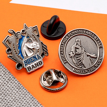 Darker plating (antique plating) create enough natural contrast to let the metal elements of your design stand out, making them perfect for die struck pins.