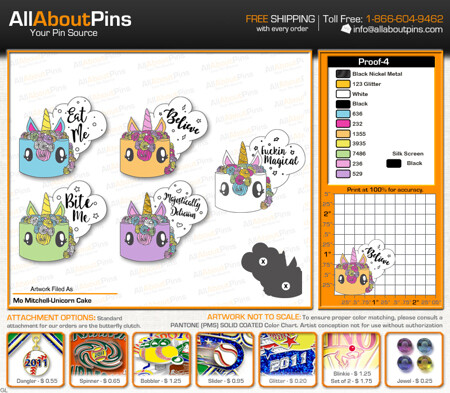 In 24 to 48 hours after receiving your information, we respond back with a full-color art proof of what your design would look like as a pin based on your specifications. At this stage, its a matter of looking over our work and deciding what works and what doesn’t.