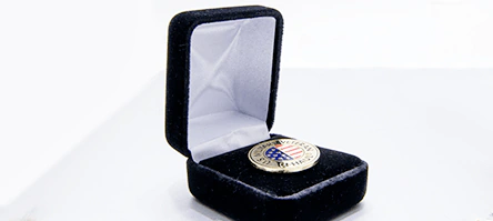 A plush Velvet Jewelry box is an elegant and classic way to present your Custom Pins to your audience. Exactly the same as used for expensive jewelry, these boxes protect and cradle your pins and enhance their appearance. The element of mystery before the hinged box is opened is always exciting. Each velvet box is shipped in a thin cardboard sleeve to protect it.