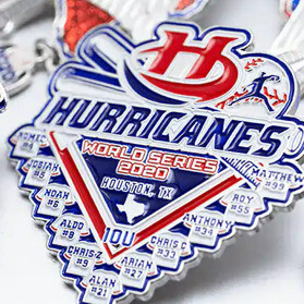 Some teams like to order enough pins to only trade with the teams they play in the tournament. Others like to order enough so their kids can trade with every team in their age group and class. Always remember to order a few extra trading pins so a late addition to the team won’t get left out!